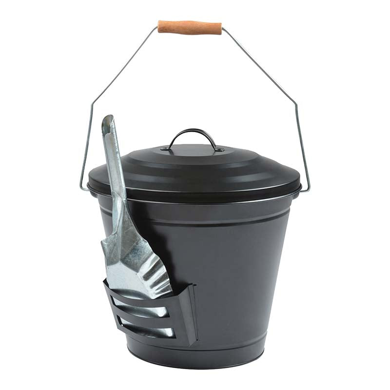 De as emmer met schep is voorzien van een handvat van zogenaamd “Schimahout”. De bijbehorende schep kan eenvoudig aan de zijkant van de emmer worden bevestigd. Na gebruik is de as emmer eenvoudig af te sluiten met een deksel zodat as niet uit de emmer zal waaien. Een kind kan het as doen.