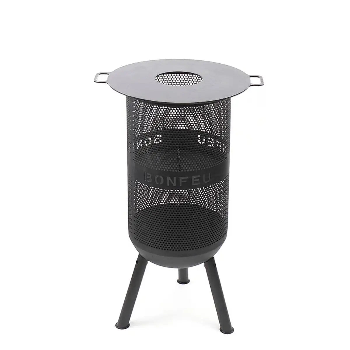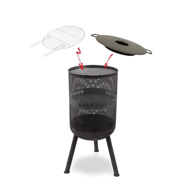 Ook de vuurkorf BonVes staat op de kenmerkende hoge poten waar het merk Bonfeu om bekend staat. De korf van de BonVes doet denken aan een ouderwetse wasmachinetrommel. Dit type vuurkorven (met een geperforeerde trommel) staat erom bekend dat ze een grote warmte-afgifte hebben. Daarnaast hebben de miniscule gaatjes in het staal een geweldig sfeervol effect tijdens het stoken.